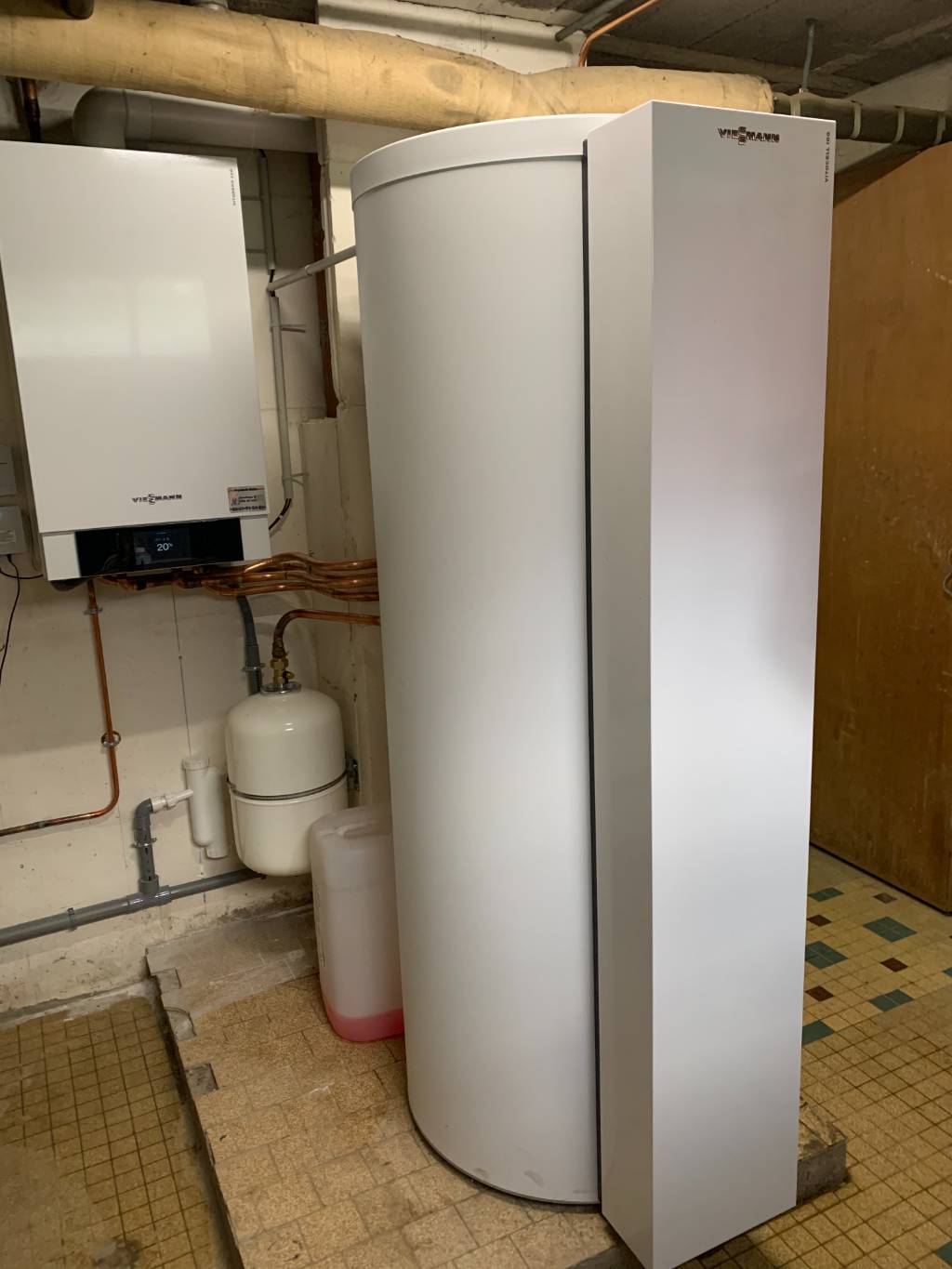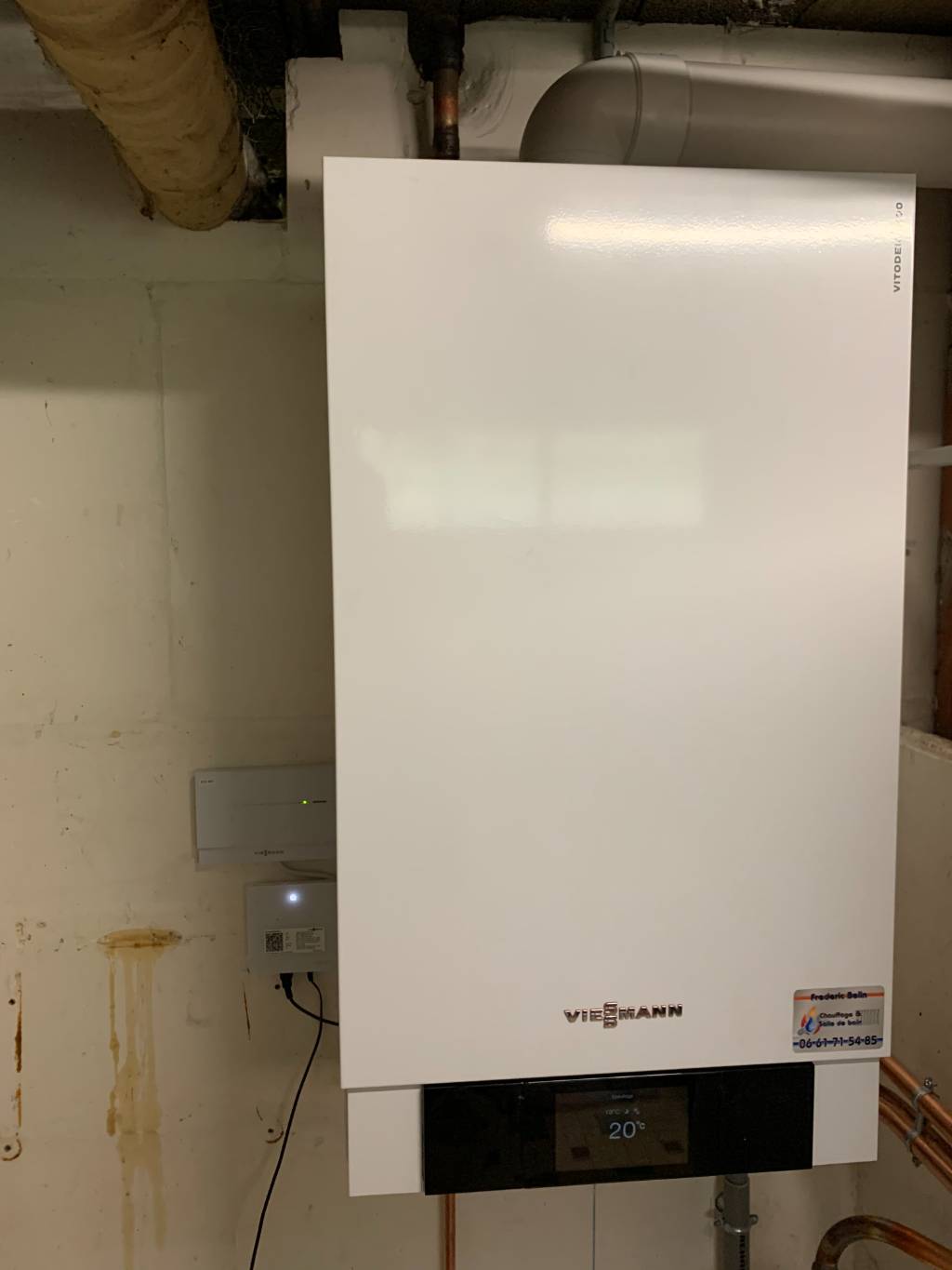 Notre équipe a installé chez notre client, une chaudière à gaz de la marque VIESSMANN équipée de son ballon d’eau chaude sanitaire, intégré, émaillé. D'une capacité de 130 litres, il offre par un système de charge, un confort d’eau chaude sanitaire élevé.